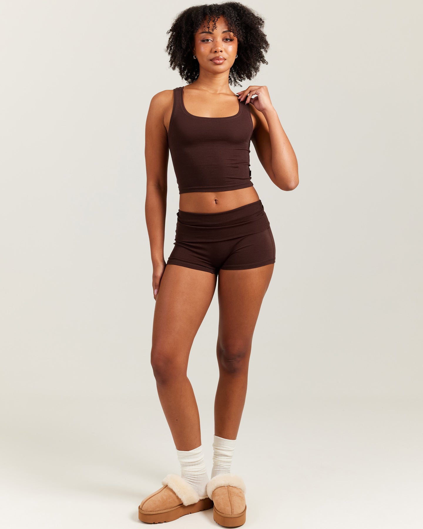 EE Lounge Fold Over Shorts - Espresso