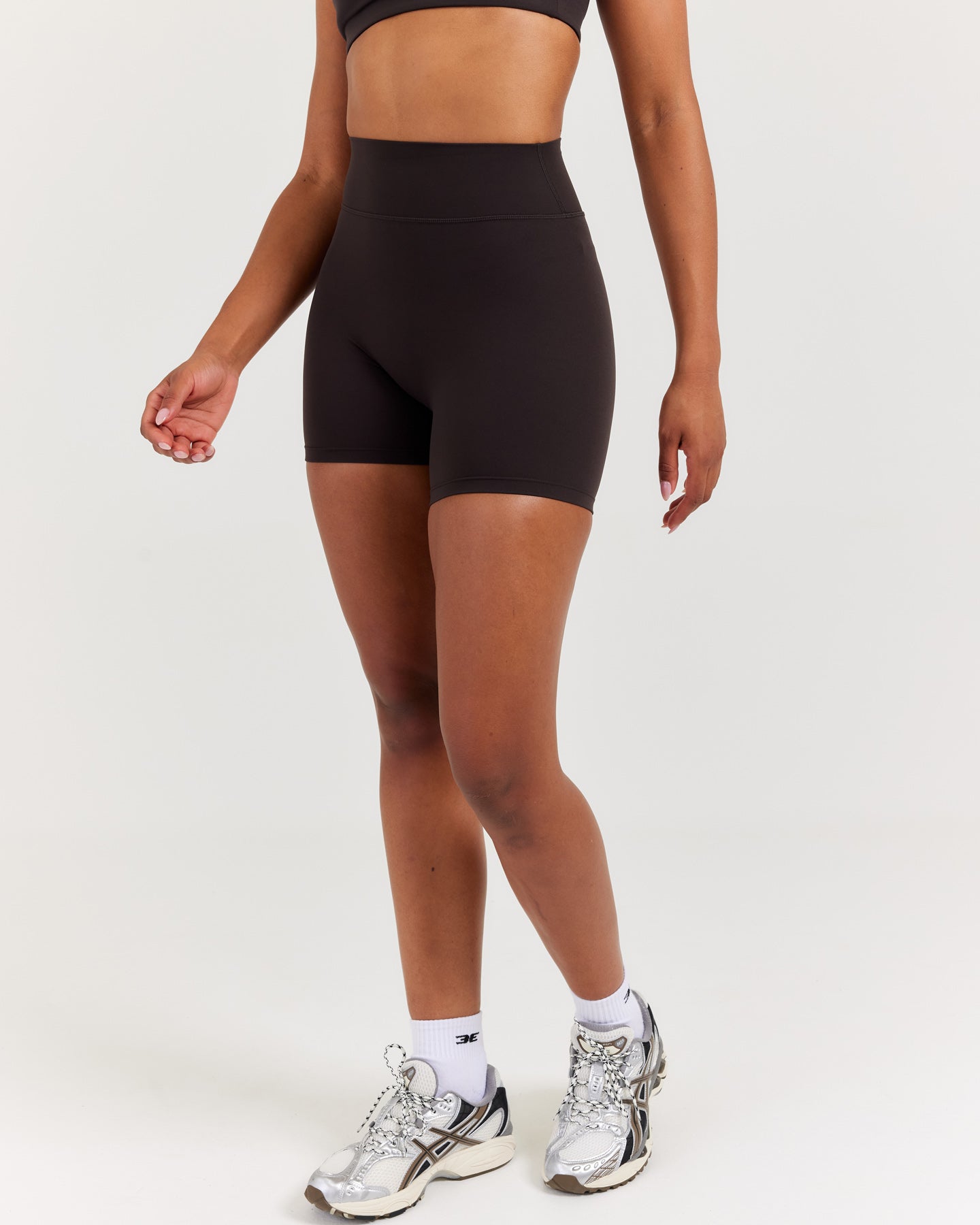 Sizing for this product runs true and we suggest opting for your usual size in shorts or sizing up if in between sizes. Bella is 5'8" and wears a size extra small (her usual sizes in EE shorts).