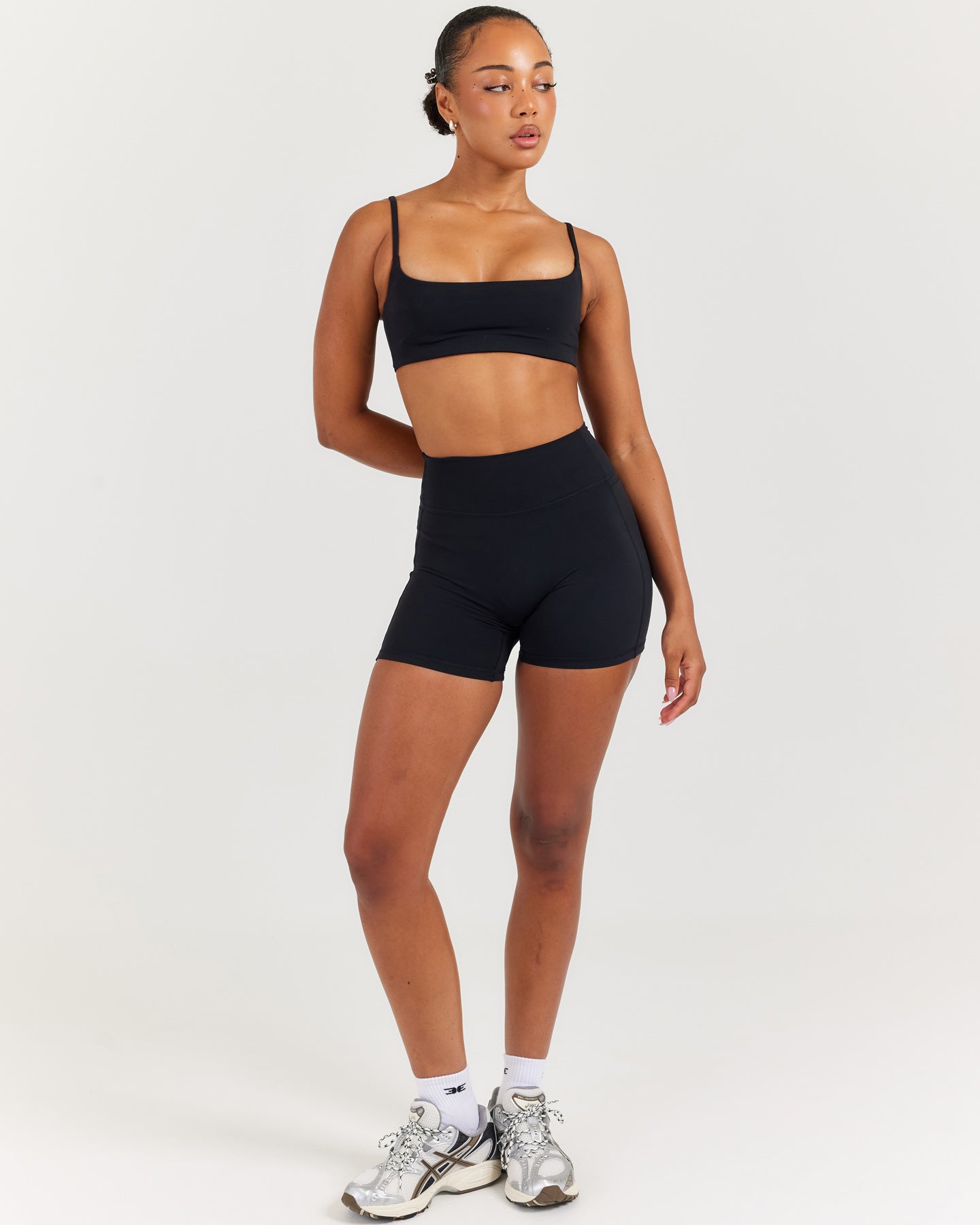 Sizing for this product runs true and we suggest opting for your usual size in shorts or sizing up if you're in between sizes. Bella is 5'8" and wears a size extra small (her usual size in EE shorts).
