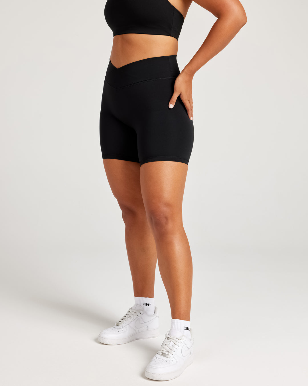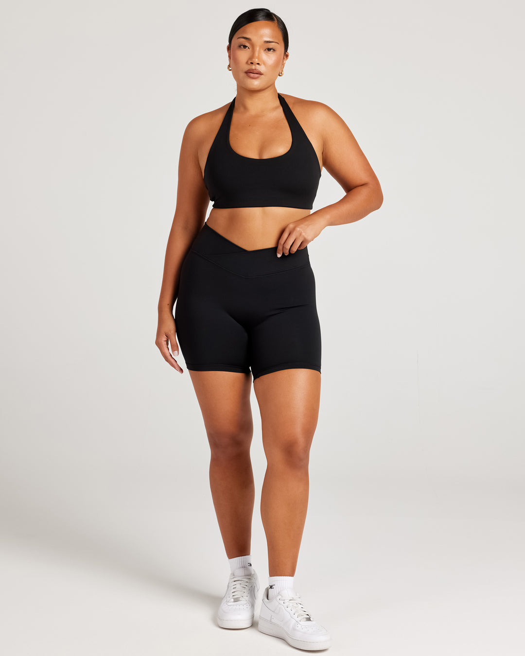 Experience our signature brushed Aura fabric, so soft it feels like a second skin. The chic crossover waistband contours and sculpts your shape, making these shorts a true essential. Perfect for your yoga flow and your coffee run.